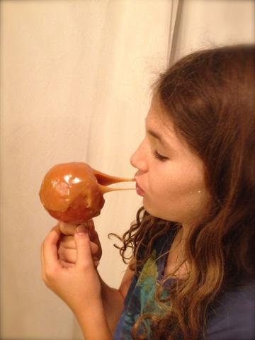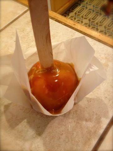 - Put on parchment square, fold up sides to keep as much hot Cocomel on the apple as possible